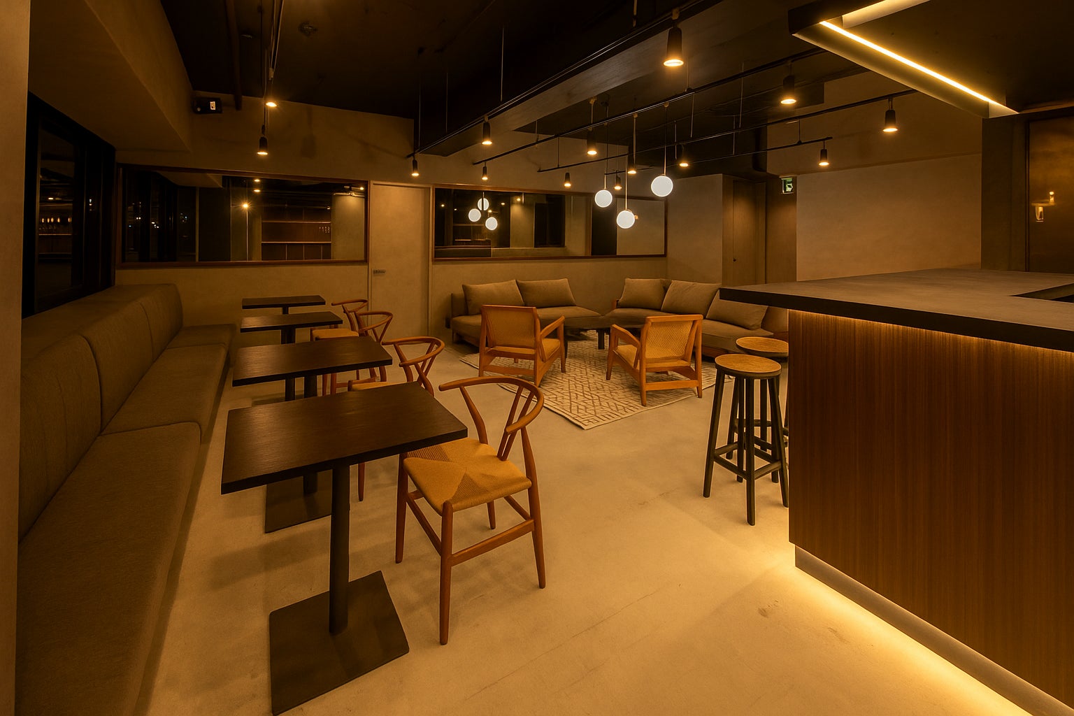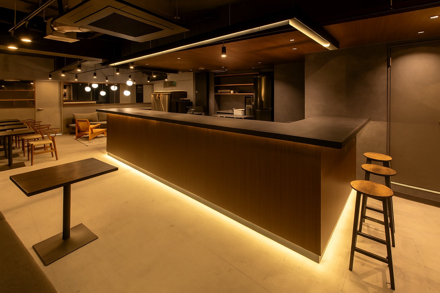 本施設は、前撮り撮影を控えた新郎新婦がドレスに着替えたり、ヘアメイクを行うための準備スペースとしての役割を持ちながら、カフェとしてもご利用いただける空間です。