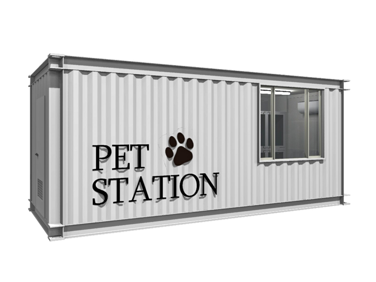 ペットステーションは建築用コンテナハウスを用いています。コンテナハウスはスピード感ある移動・移設が可能かつ頑丈な構造が特徴で、先の能登半島地震の際にも災害支援用コンテナハウスとしてトイレ、入浴施設、臨時の救護所や仮設住宅として活用されました。