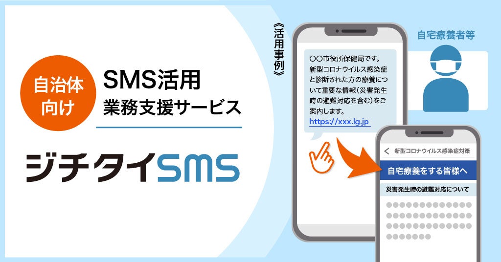 「ジチタイSMS(※1)」は、SMS送信サービスを提供する株式会社メディア4u(本社:東京都中央区、代表取締役社長:奥岡 征彦、以下「メディア4u」)とジチタイワークスが協働で自治体向けに提供する、SMS(携帯電話番号宛のメッセージ)を活用した業務支援サービスです(※2)。