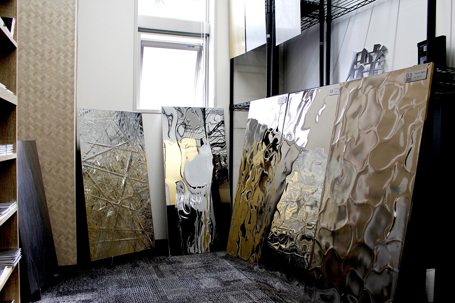 オープン当初は壁面・天井パネルや各種サンプルを中心にご用意しておりますが、今後、展示内容を増やして参る予定です。 また、デザイニングステンレス鋼、デザイニングチタンに加え、新たなメッキ鋼板(FeLuce ®︎)やその他の金属もご用意して、デザインのイメージ創出にご検討いただける場所としてお役に立ちたいと思っております。