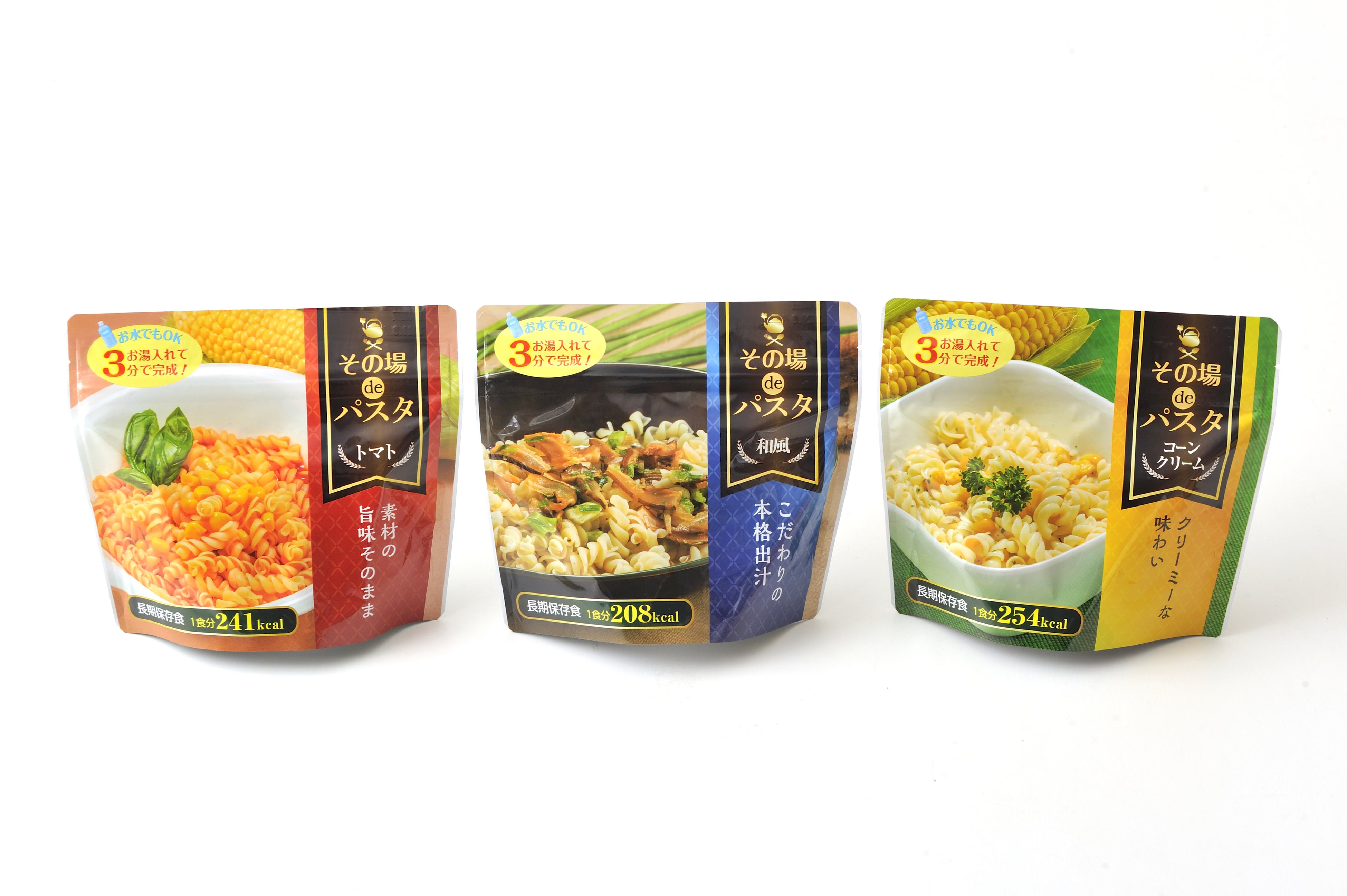 【新発売】大好評の5年保存食 「その場deパン」プレーン味に新発売のチョコ味・いちご味を加えた3種15食セットをECサイトにて3/1(水)より発売を開始しました!