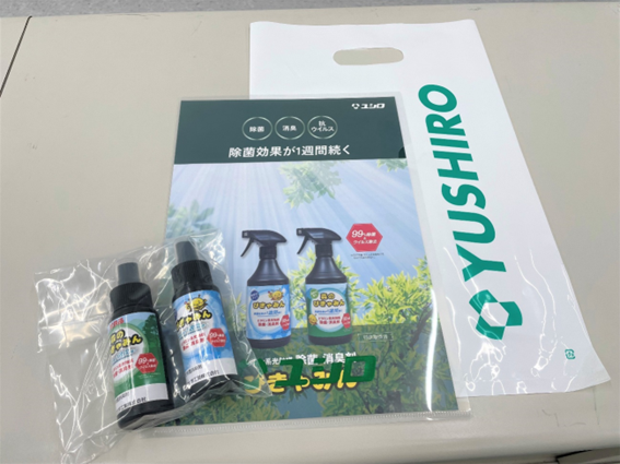 【参加記念品として当社製品「ぴきゃみん」のお試しセットをお配りしました】