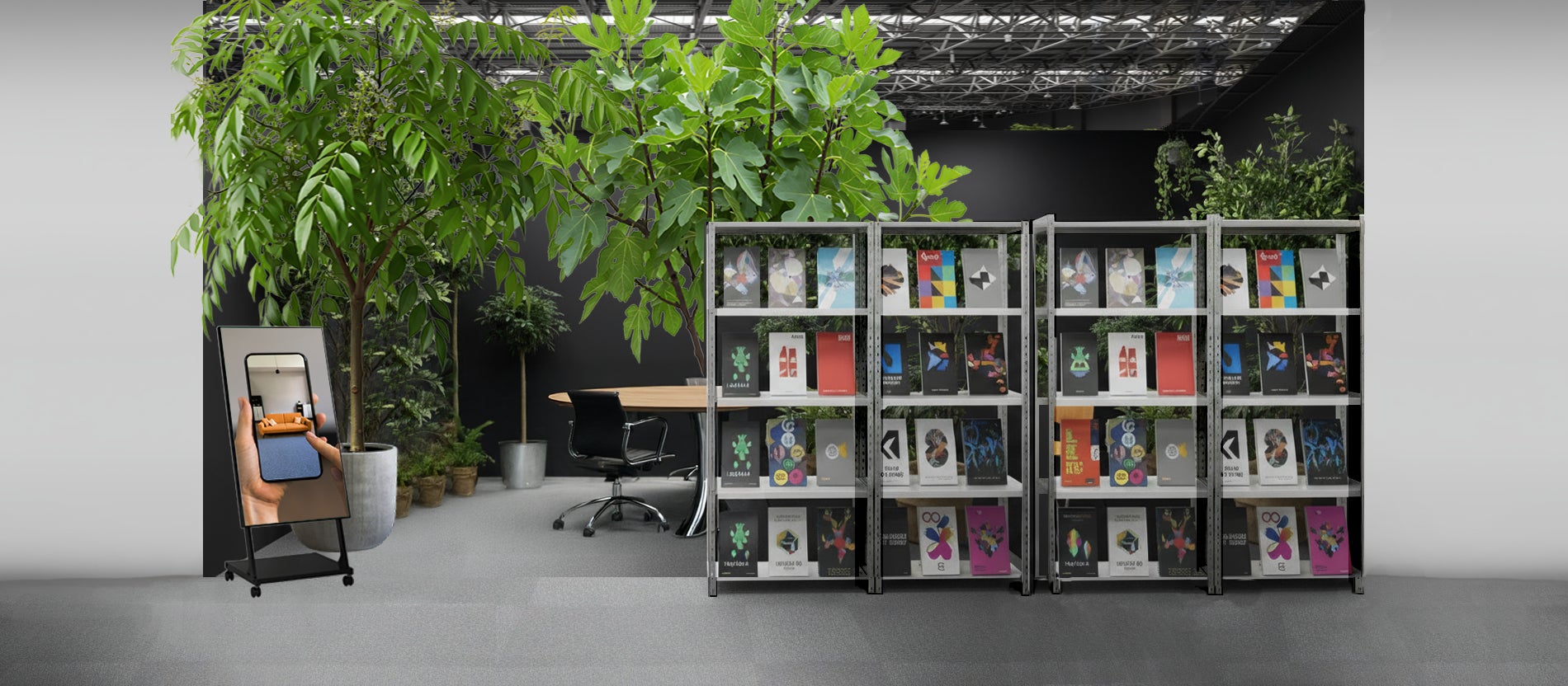 当社展示ブースでは、これまで手掛けてきた広告・デザインの制作事例をご覧いただける他、気軽にスタッフと談話していただけるスペースを設けます。