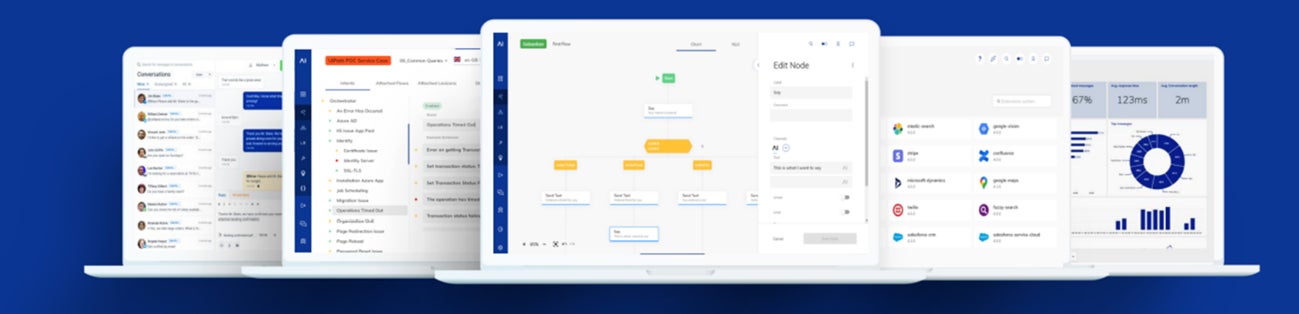 Cognigyは、2022年春に対話型AIプラットフォームのジャンルにて、ガートナー社よりグローバルでLeaderポジションに選定されました。直感的なエディター機能により、短期間で拡張性の高い対話型AIをノーコード・ローコードでの設計・開発が可能で、標準でSalesforce、zendesk、UiPathなどの様々な業務システムと連携可能なコネクターを多数サポートしており、自然な会話にて業務の自動化が実現できる対話型のAIボットをフレキシブルにデザイン・運用することができます。