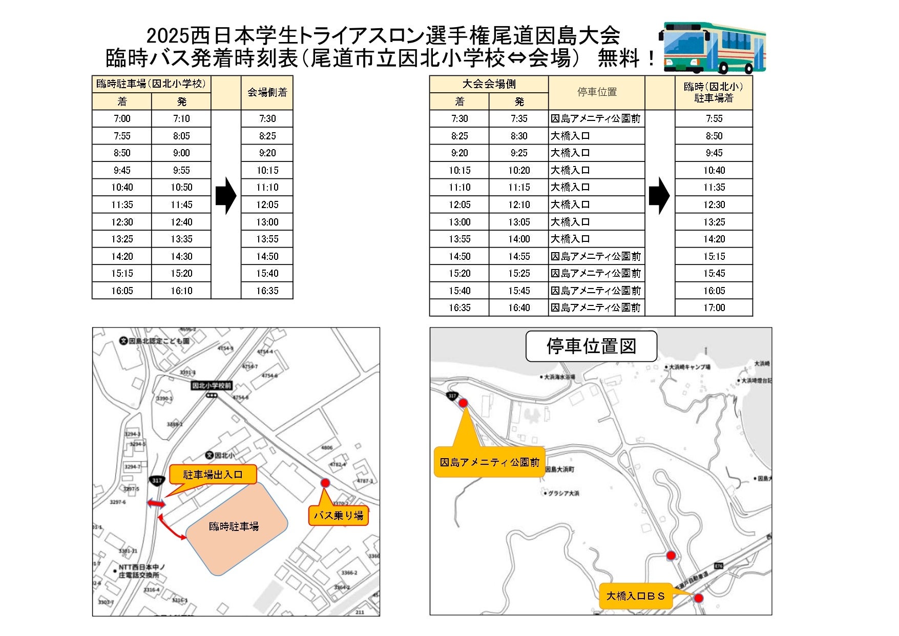臨時バス:尾道市立因北小学校⇔会場(無料!!)