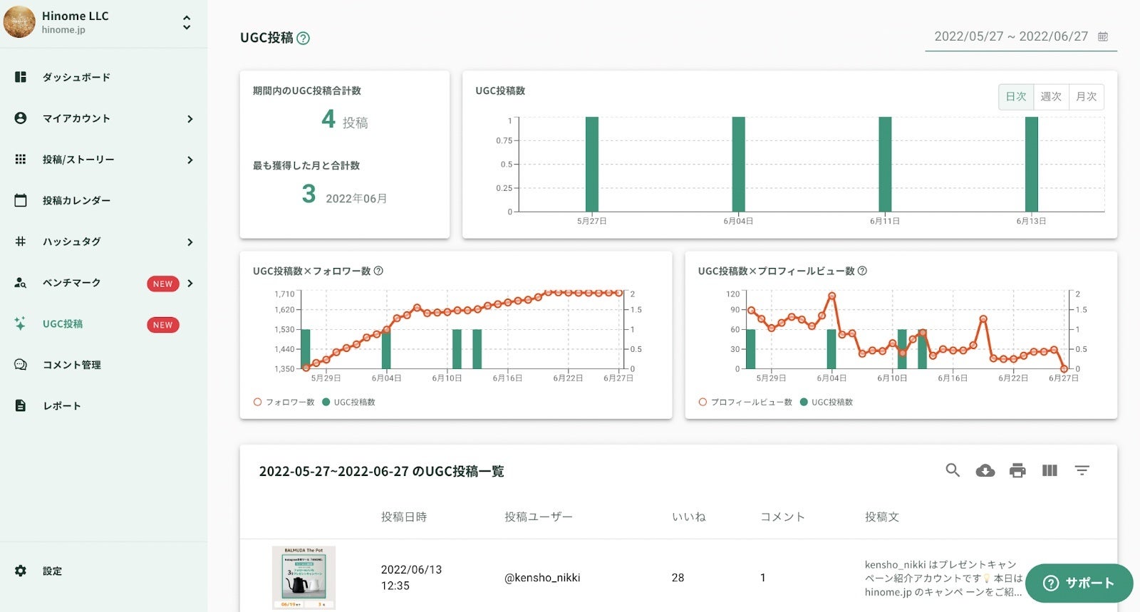 "世の中の良いモノに陽の目が当たる社会へ"を理念のもと、デジタルを活用した売上構築の支援・Eコマースサポートを行うHinome合同会社(所在地:奈良県橿原市、CEO:中家直也、以下Hinome)は、Instagramのデータ解析を行うことで適切なSNSマーケティングを行い目標達成を支援するため、企業の広報担当者・SNS担当者に向けて、完全無料で使用可能なInstagram分析ツール『HINOME』で公式APIを利用したリールの投稿分析が可能になりました。