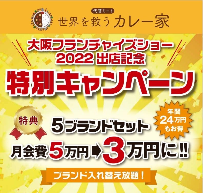 株式会社ウィル(本社:愛知県名古屋市北区、代表取締役:馬場真紀子)は、代替ミート使用で本格カレーをデリバリーで提供する『地球を救うカレー家』が2022年7月21日(木)より7月22日(金)インテックス大阪 2号館で開催されるフランチャイズショー大阪2022に出展。