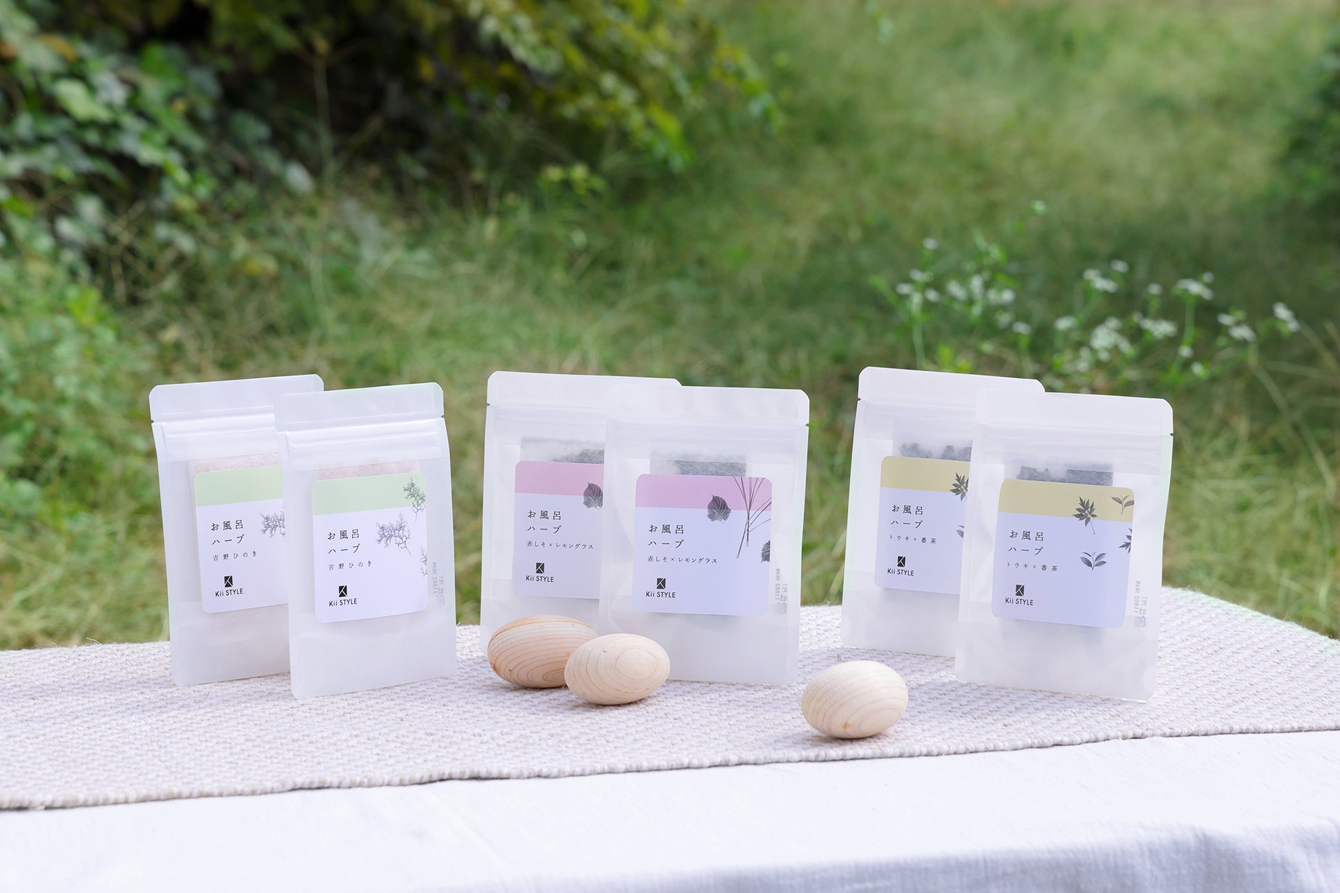 紀伊半島のライフスタイルブランド「Kii STYLE」から、自然素材のお風呂用ハーブ&吉野のひのき玉のセット「癒しのバスタイム」新発売。