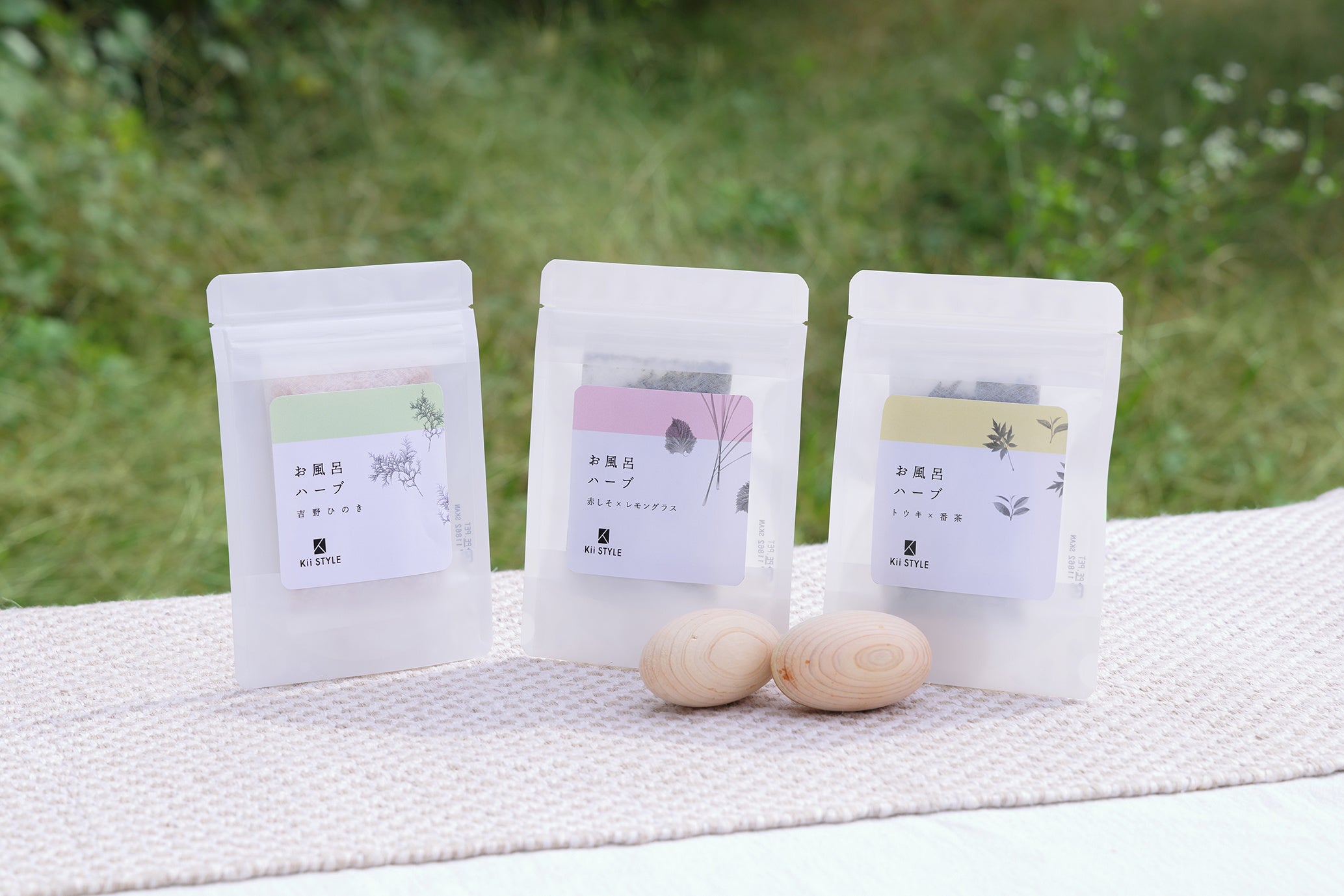 - 紀伊の地で育った植物でつくった、3種類のお風呂ハーブ。