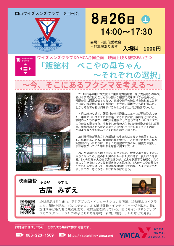 ワイズメンズクラブ&YMCA 8月例会 合同企画 映画上映&監督挨拶 「飯舘村 べこやの母ちゃん〜それぞれの選択」