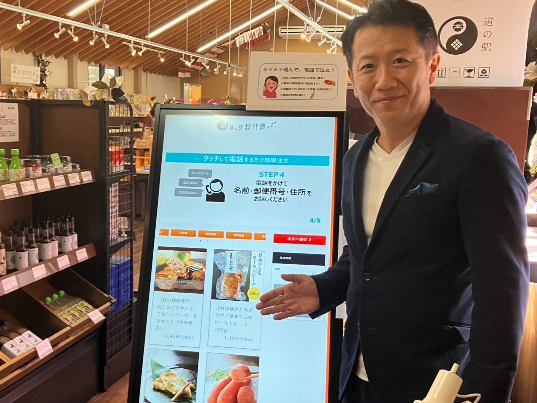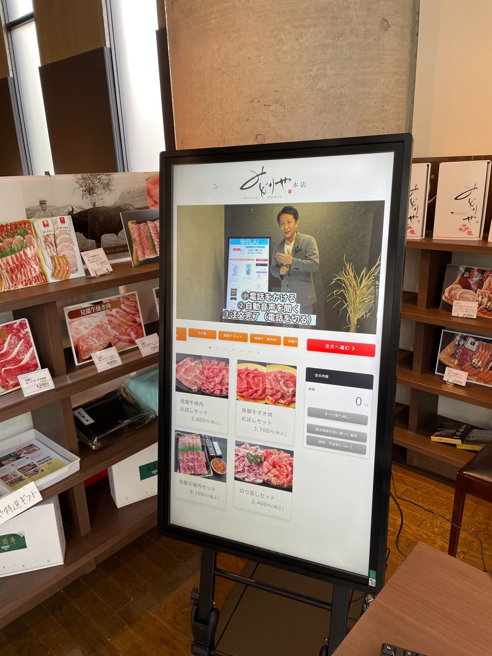 冷蔵保存や手荷物の多さというお土産購入の課題を解消し、お客様がお土産として牛肉を購入したいと思った瞬間に、直接サイネージを操作して注文を行うことができます。