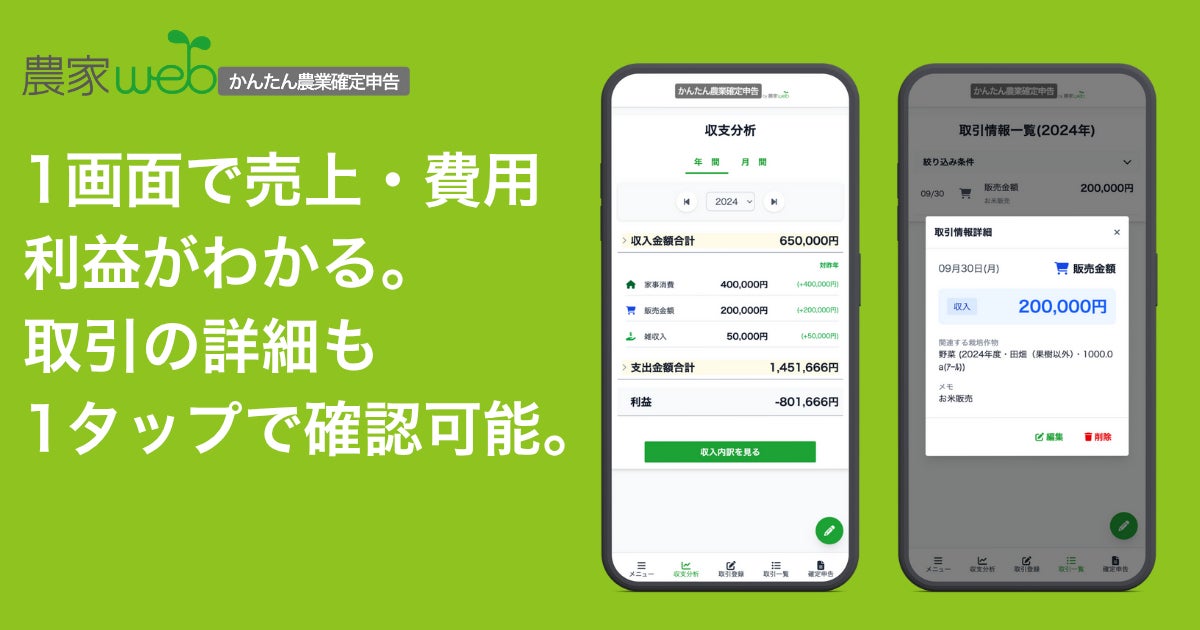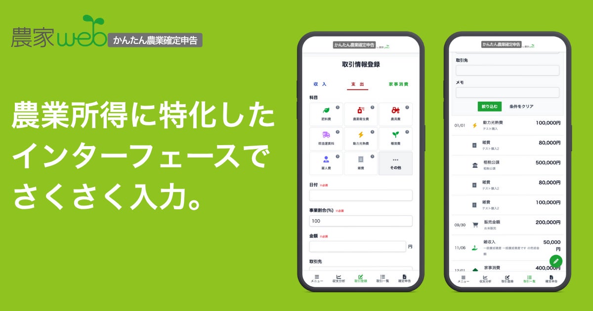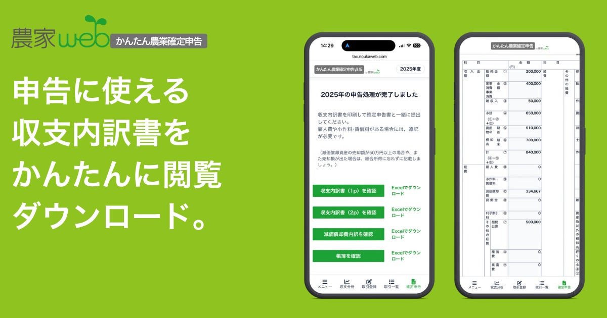 農業経営の数字と確定申告をもっと “かんたん” に!「かんたん農業確定申告」正式版をリリース