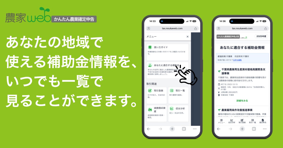 都市農業開発が運営する「農家web補助金データベース」と連携し、