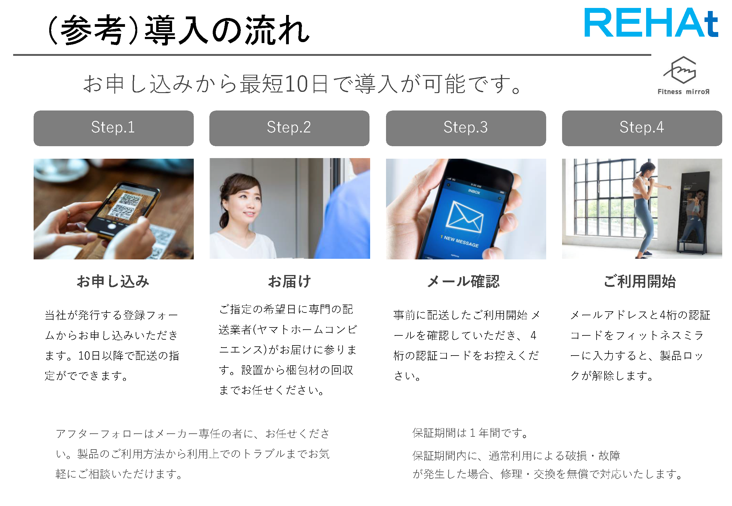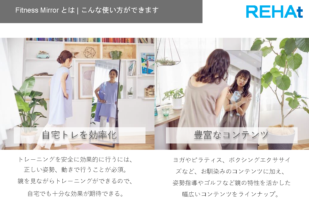 株式会社REHA・ツーリズム(本社:東京都 代表取締役 中田秀貴 以下REHAt)は、株式会社Dream box(本社:福岡市 代表取締役:松永 高徳 以下Dream box )と、2022年7月25日、ミラー型オンライントレーニングデバイス「Fitness Mirror」及びスマートウォッチ「Nobi Band」の販売代理店契約を締結しました。REHAtから優待販売を開始します。