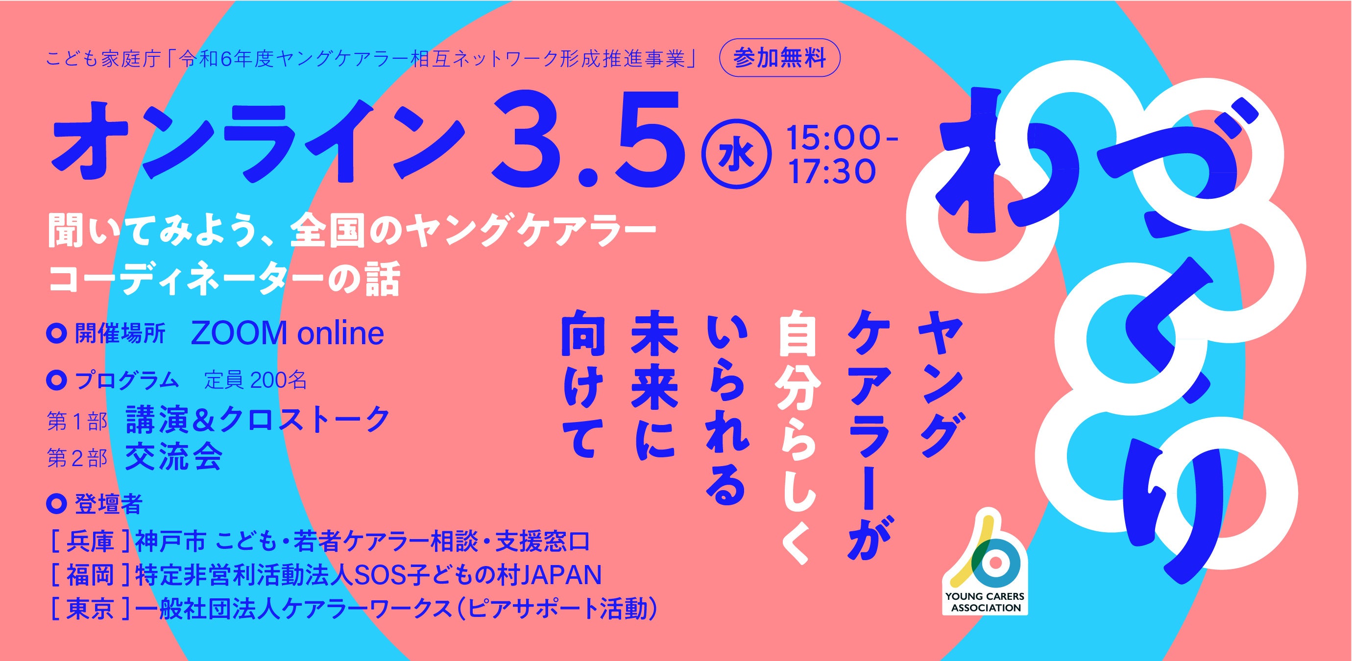 一般社団法人ヤングケアラー協会(本社:東京都品川区、代表理事:宮崎成悟)は、「わづくり〜ヤングケアラーが自分らしくいられる未来に向けて〜」を、大阪・北海道・東京・オンラインの計4回開催いたします。
