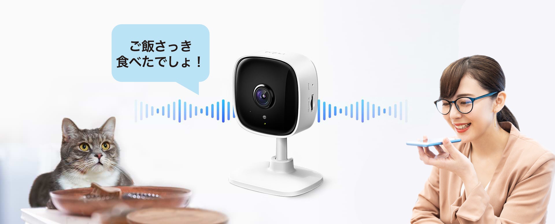 さらに、双方向通話機能では「Tapo C110」越しにコミュニケーションが取れるため、外出先からお家に残したペットに話しかけたりすることもできます。