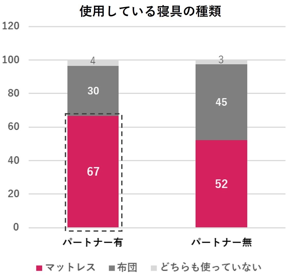 今回の調査結果を元に、パートナーと寝具の相関性について分析します。