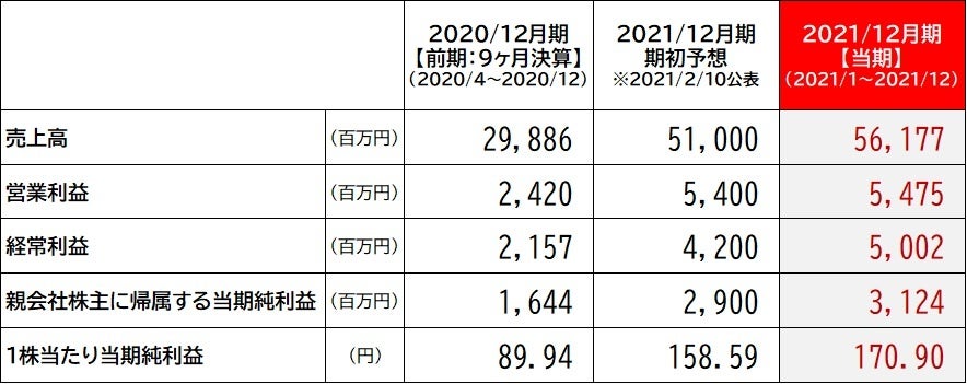 地主株式会社 2021年12月期連結決算を発表 売上高、営業利益、経常利益および当期純利益ともに期初予想を上回る