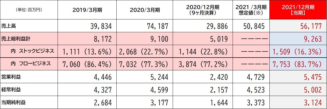 ※2021/3月期想定値:2020年12月期の決算数値(2020年4月1日から2020年12月31日までの9ヶ月決算)