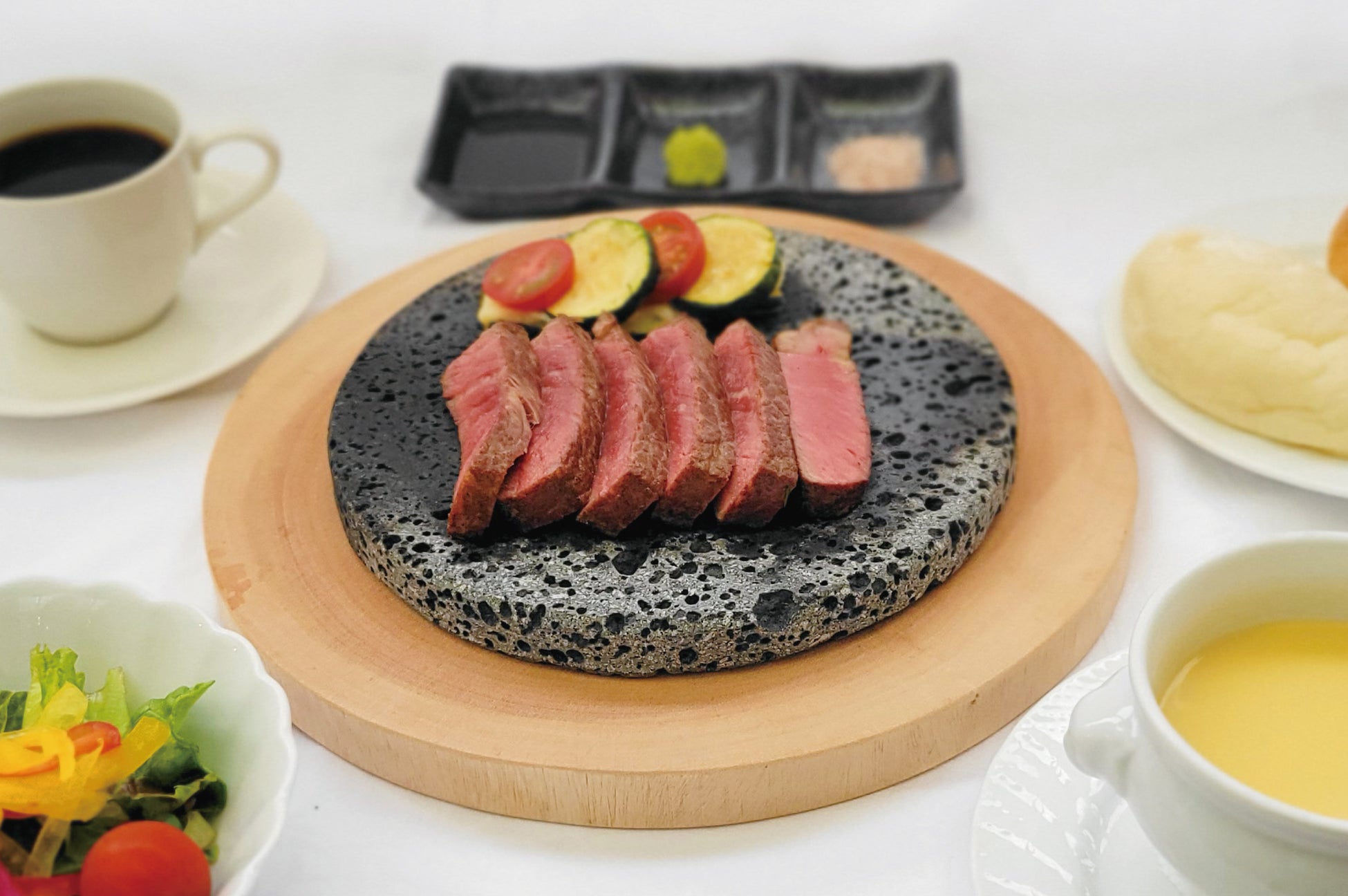 また、森のレストランでは、山梨ブランド牛「甲州ワインビーフ」を使用した溶岩焼き「甲州ワインビーフサーロインの富士山LAVEステーキ」を販売致します。富士山の溶岩で焼き上げるステーキはミネラル豊富でふっくらジューシーです。デザートでは富士山のイメージした富士山シフォンパフェの販売など、豊かな地域資源に恵まれた山梨ならではの食をお楽しみ頂けます。