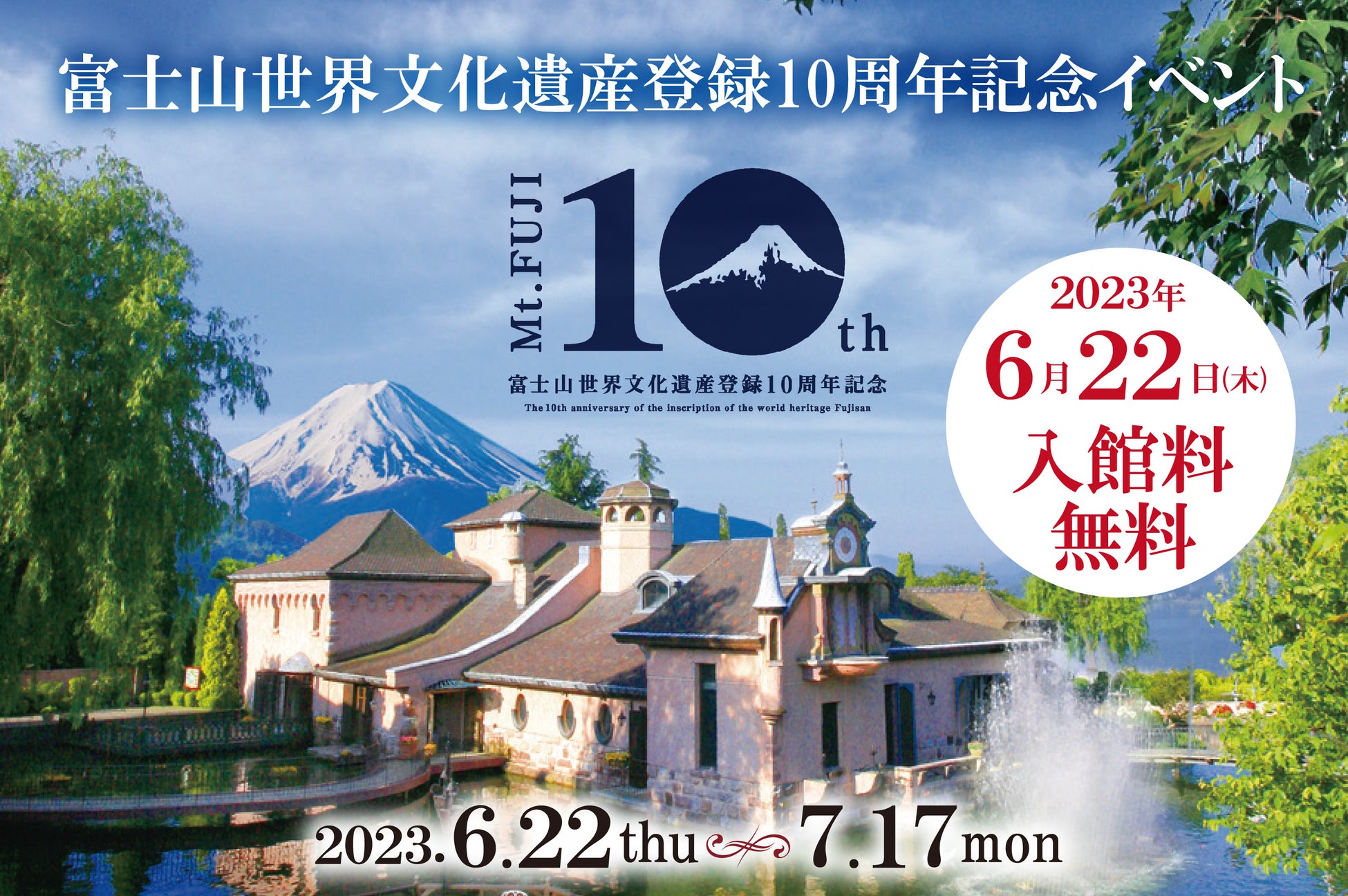 河口湖音楽と森の美術館は富士山が世界文化遺産に登録された6月22日(木)より7月17日(月)まで「富士山世界文化遺産登録10周年記念イベント」を開催致します。
