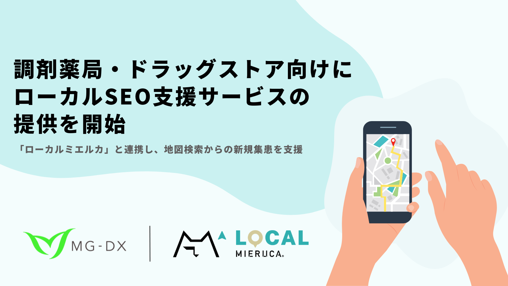医療機関のDXを推進する株式会社MG-DX (本社:東京都渋谷区、代表取締役:堂前 紀郎、以下「当社」)は、チェーン店向けデジタルマーケティング支援ツール「ローカルミエルカ」を運営する株式会社Faber Company(本社:東京都港区、代表取締役:稲次正樹・古澤暢央、以下「ファベルカンパニー」)と、共同で調剤薬局・ドラッグストア調剤部門に特化したローカルSEO支援サービスパッケージの提供を開始したことをお知らせいたします。