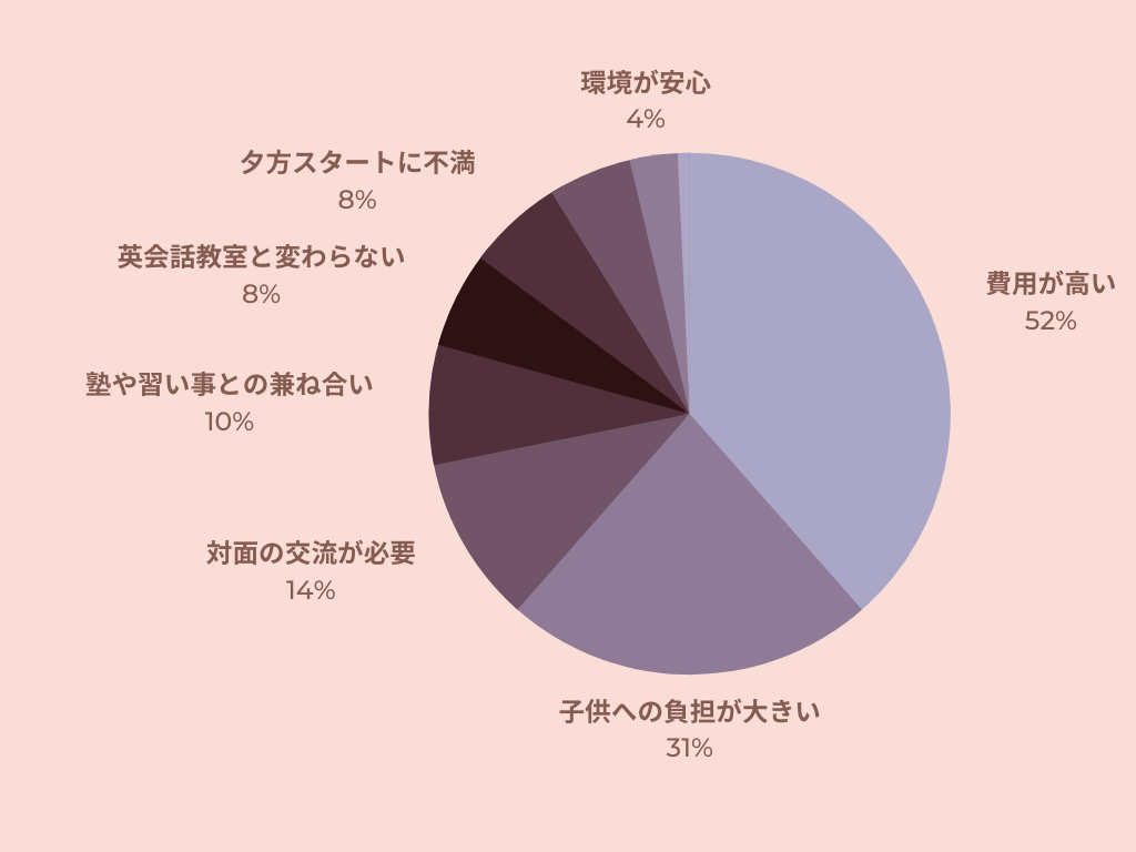 (原因4)ネイティブの講師を確保することが難しい:講師は国内在住が条件になるため、スクールによっては、講師として求められる資質に問題がある場合や、ノンネイティブの講師が教えている場合など、スクールごとに教育格差が生じやすい。