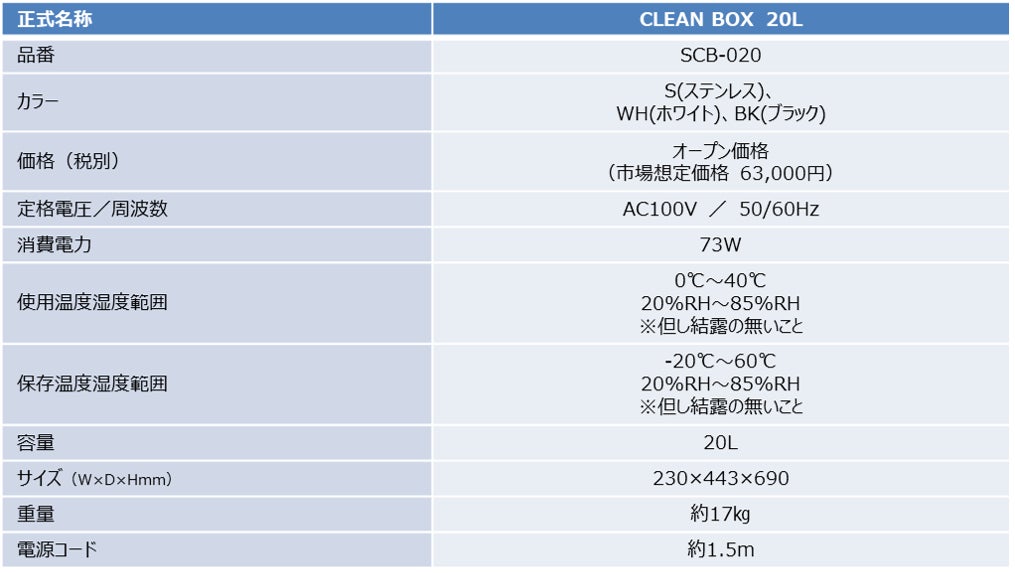 この度、新発売する「CLEAN BOX SCB-020」は、前シリーズをさらに改善。好評なシンプルデザイン、省エネ、静音性などはそのままに、お客様からのご要望をいち早く反映して、より使いやすく、より便利になりました。カラーも充実に、ご家庭の家電製品とも調和しやすいシルバー、ホワイト、ブラックの3色を展開します。