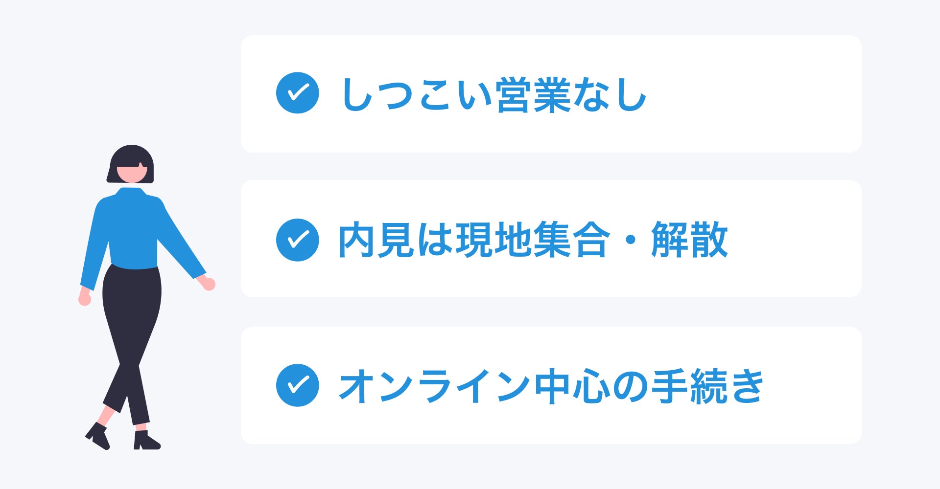 おとり物件が一切なく、カスタマーは信頼できる情報をもとに物件選びをすることが可能です。