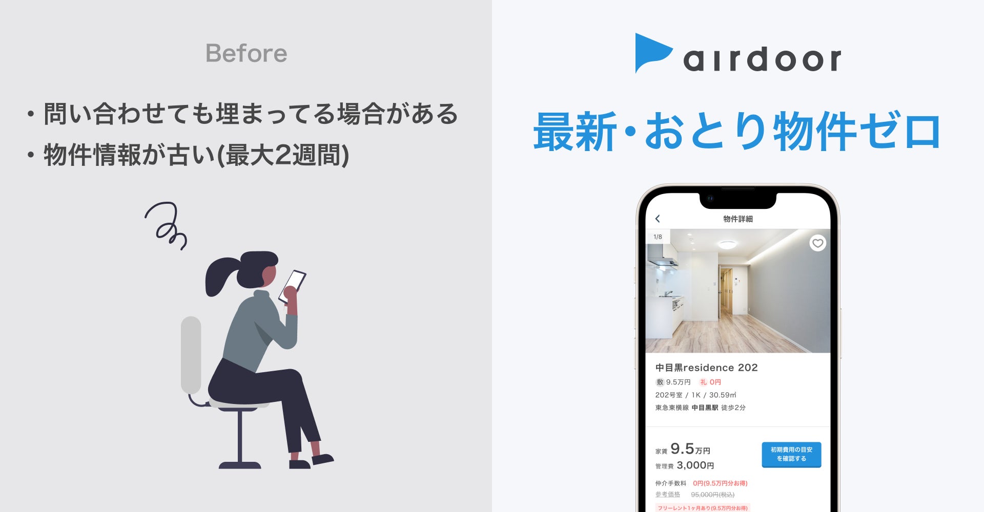 事業内容:ダイレクト賃貸検索サービス「airdoor(エアドア)」の企画・開発・運営等