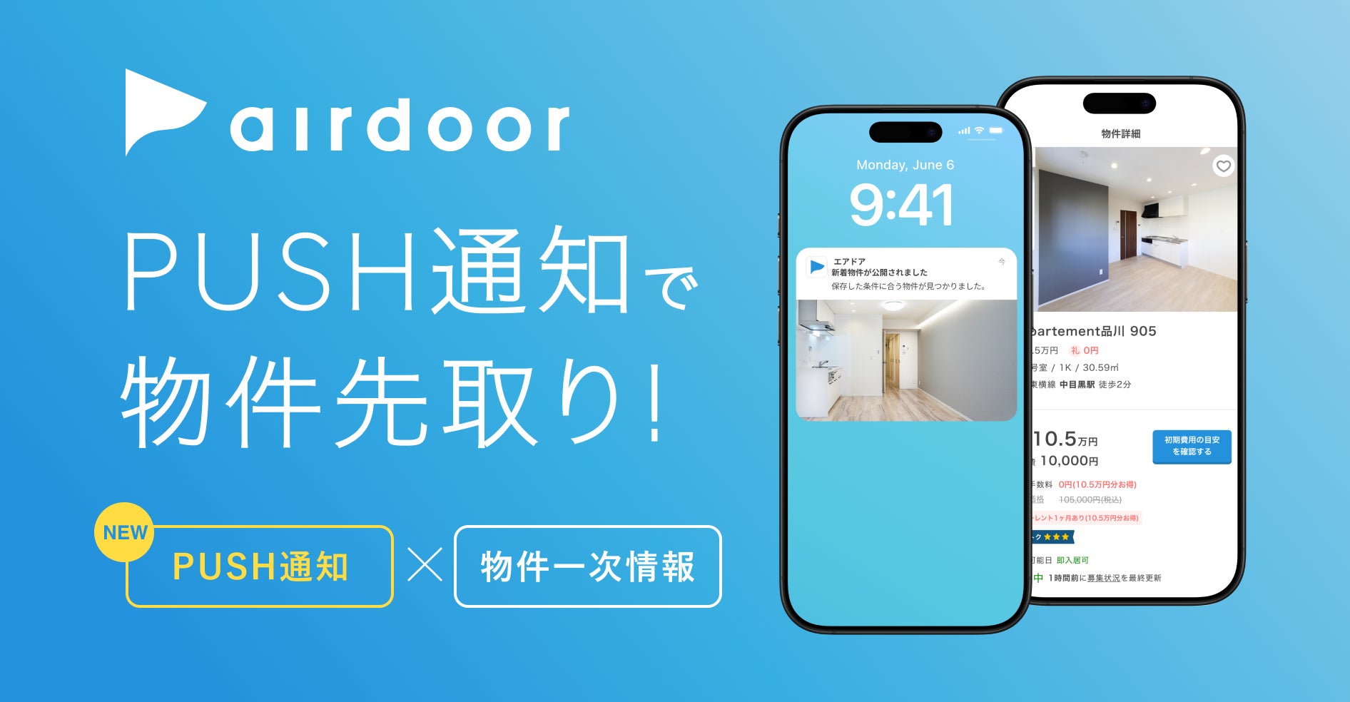 プッシュ通知で物件先取り!ダイレクト賃貸検索サービス「エアドア」公式アプリをリリース