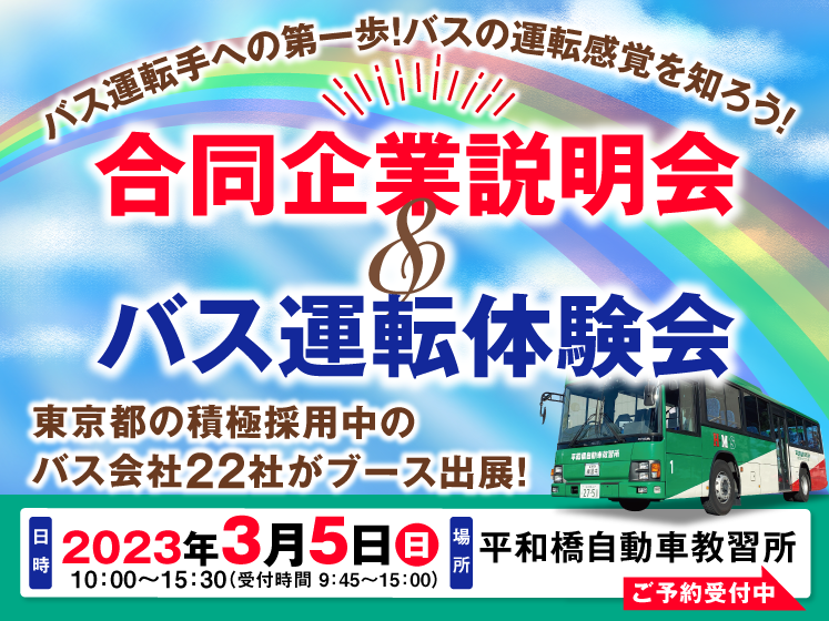 バス運転手専門の求人サイト『バスドライバーnavi(どらなび)』を運営するリッツMC株式会社(東京都港区、代表取締役社長・中嶋美恵)は、2023年3月5日(日)に平和橋自動車教習所と共同の企画運営にて、バス運転手未経験者歓迎の就職イベント『バス会社合同企業説明会&運転体験会in平和橋自動車教習所』を開催致します。
