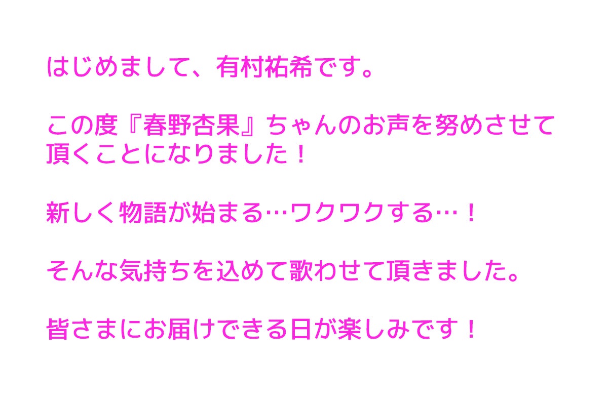 春野 杏果の歌唱は、キャラクターボイス出演の声優の有村祐希さんが担当。