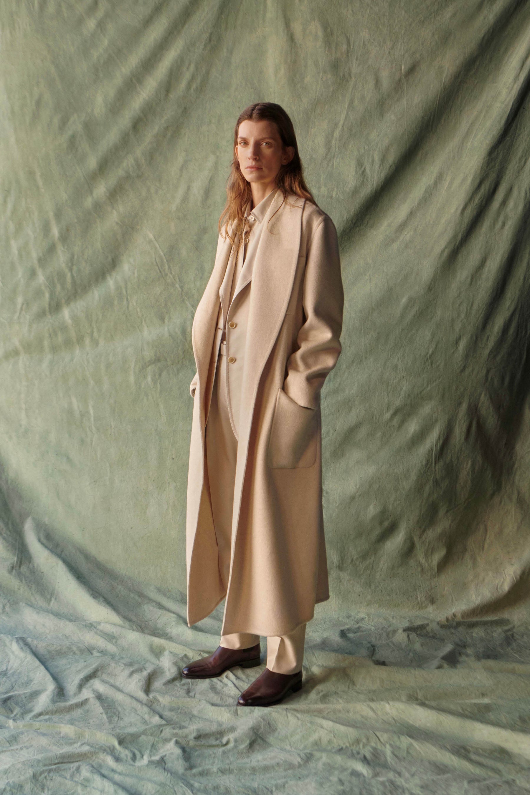 メンズのワードローブをそのまま進化させた軽やかなアイテムは、同じ素材を使用しながらも流れるような優美さを表現し、シルエットで遊び心を添えています。