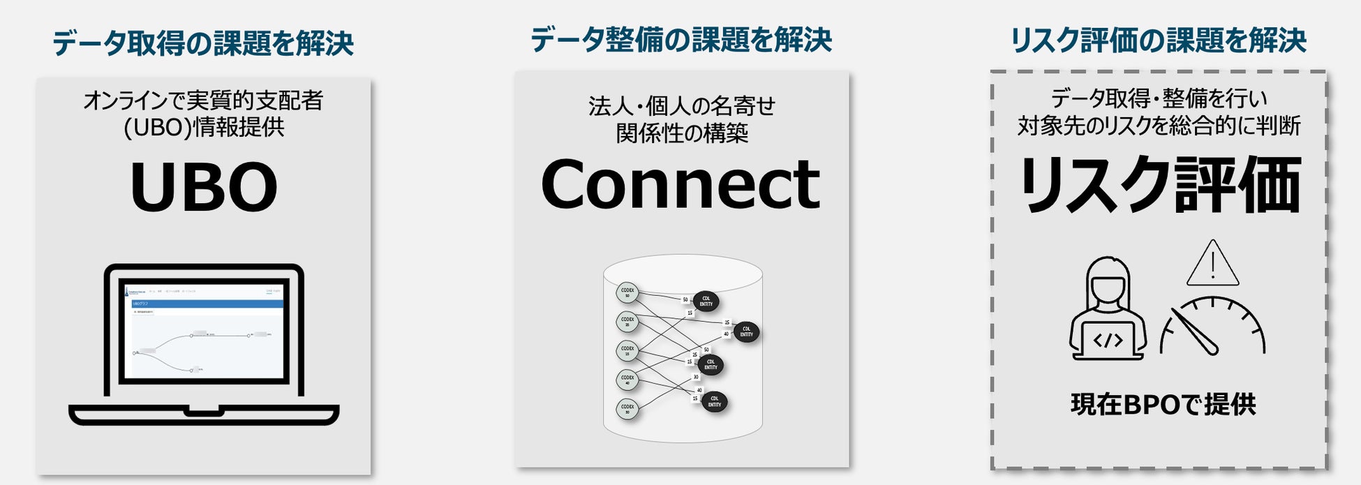 マネー・ローンダリング等の金融犯罪は、年々手口が巧妙化し、その規模も拡大しています。 犯罪収益の凍結、差押えが困難な理由の1つに、フロント企業や架空取引などによる犯罪者の隠蔽があります。国内外の法令・ガイドライン等は、金融機関に顧客の実質的支配者や取引先を特定し、リスク評価することを求めています。しかし、その実行は容易ではありません。
