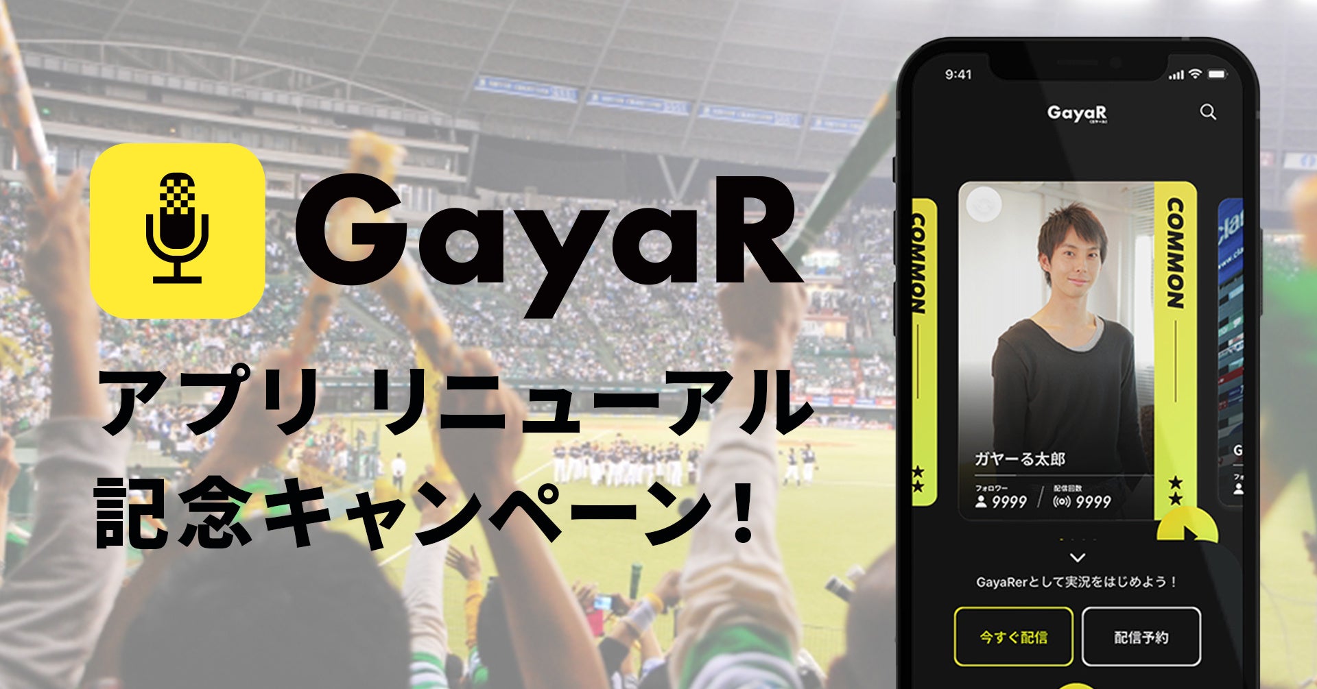リアルタイムスポーツ実況アプリ「GayaR」がリニューアル後のキャンペーン実施/マイレージ開始/配信をしてコインをゲットしよう!