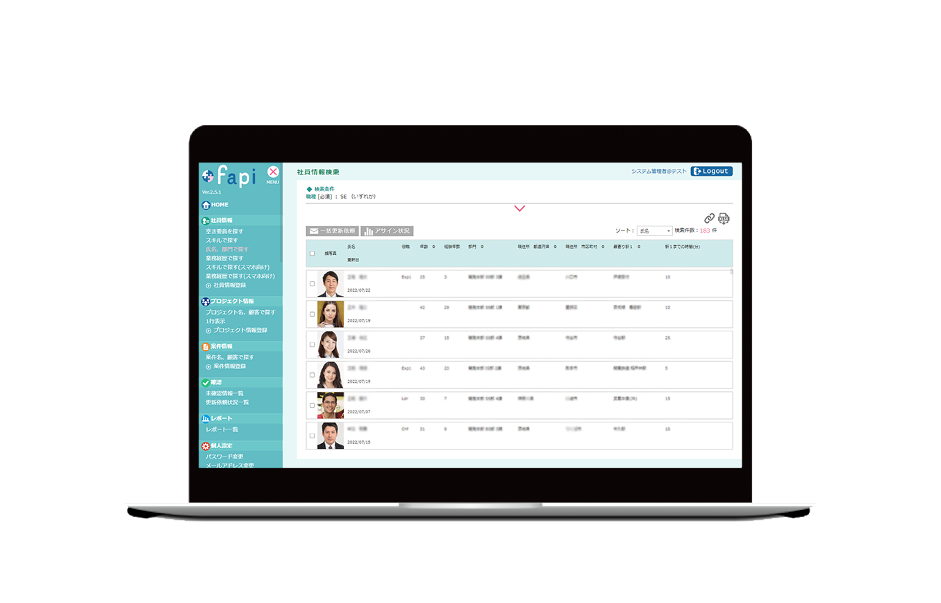 スキル管理・アサイン管理支援ツール『fapi』は、社員のスキル管理やプロジェクトのアサイン検討・管理に必要な諸機能を搭載しており、業務の効率化に貢献できるサービスです。