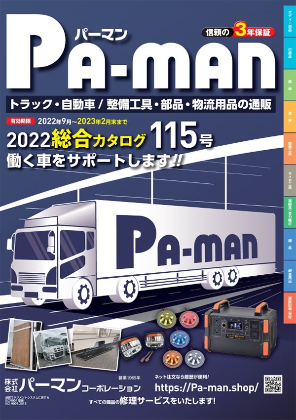 トラック用品や物流用品の「欲しい!」が見つかるパーマン最新カタログでは、オリジナル商品を中心に、新商品350点以上追加!各業界のお困りごとを解決するシステム商材もラインナップ中!