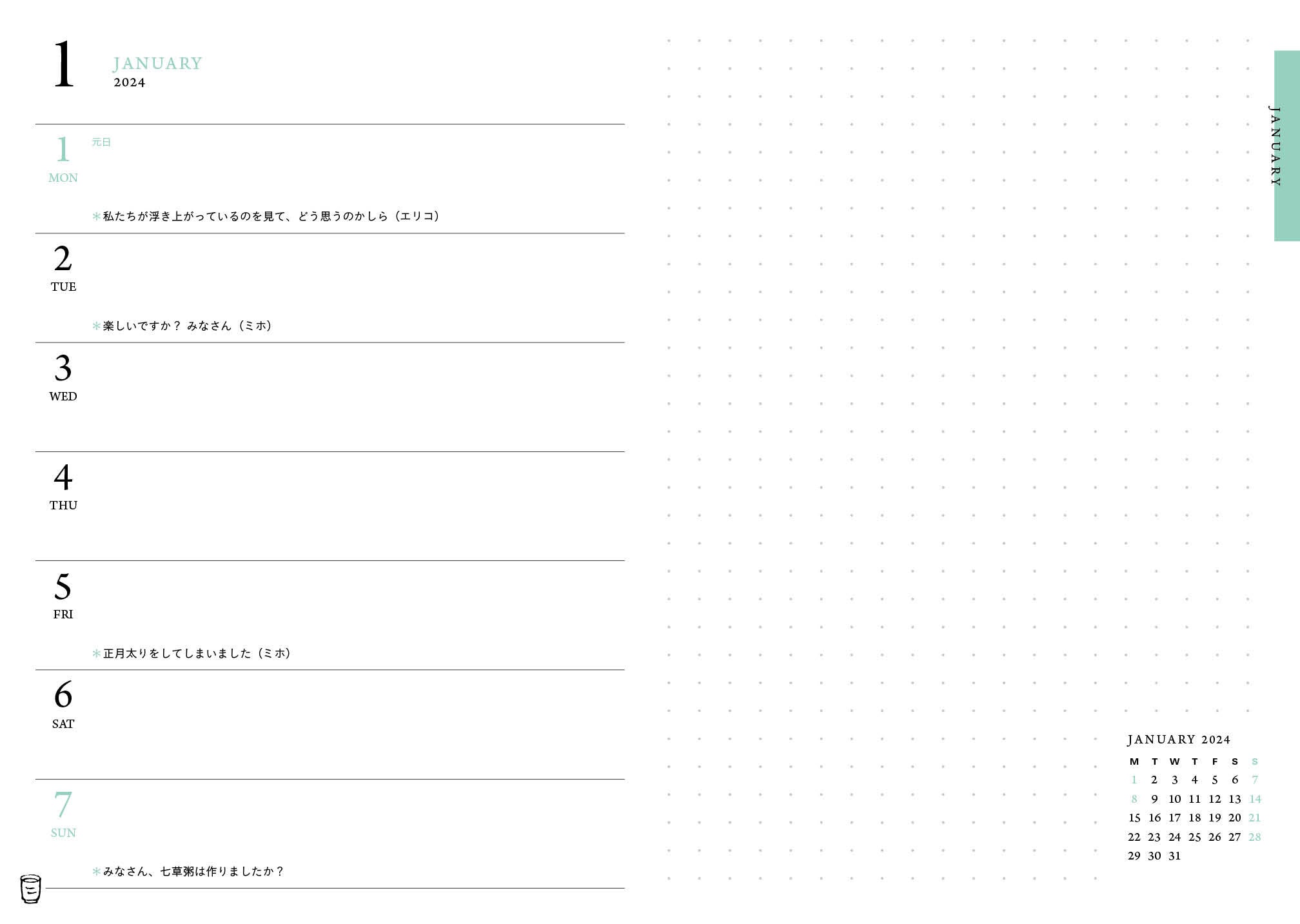 ウィークリーのフリー欄がドットタイプになり、図やイラストを描くなどより自由に使いやすくなりました!
