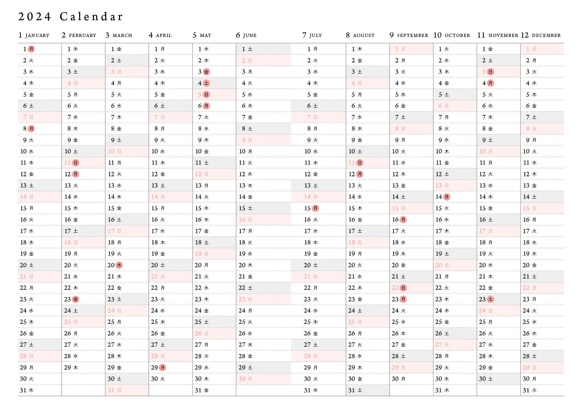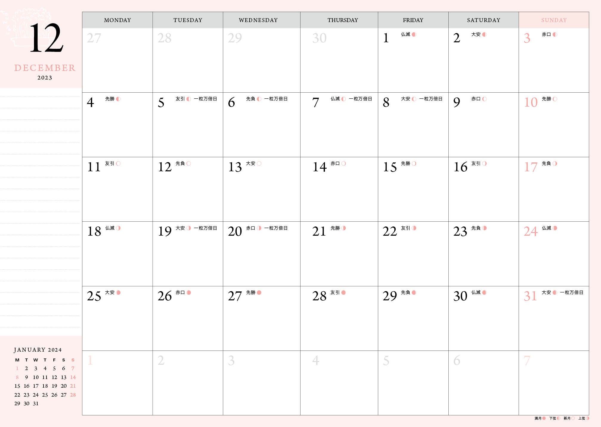 週間スケジュール(レフトタイプ)2023.12~2024.12裏写りが少なく鉛筆でもペンでも書き心地のよい用紙を使用