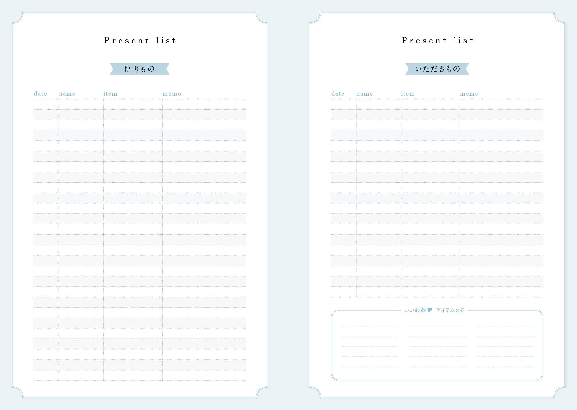 ほしいもの・やりたいことリスト/プレゼントリスト/家具・家電の採寸メモ/アドレス帳/パーソナルデータ/年齢早見表など便利な機能ページ付き