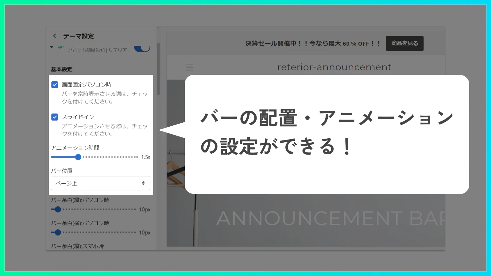 ・様々なアナウンスメントバーが作成できる