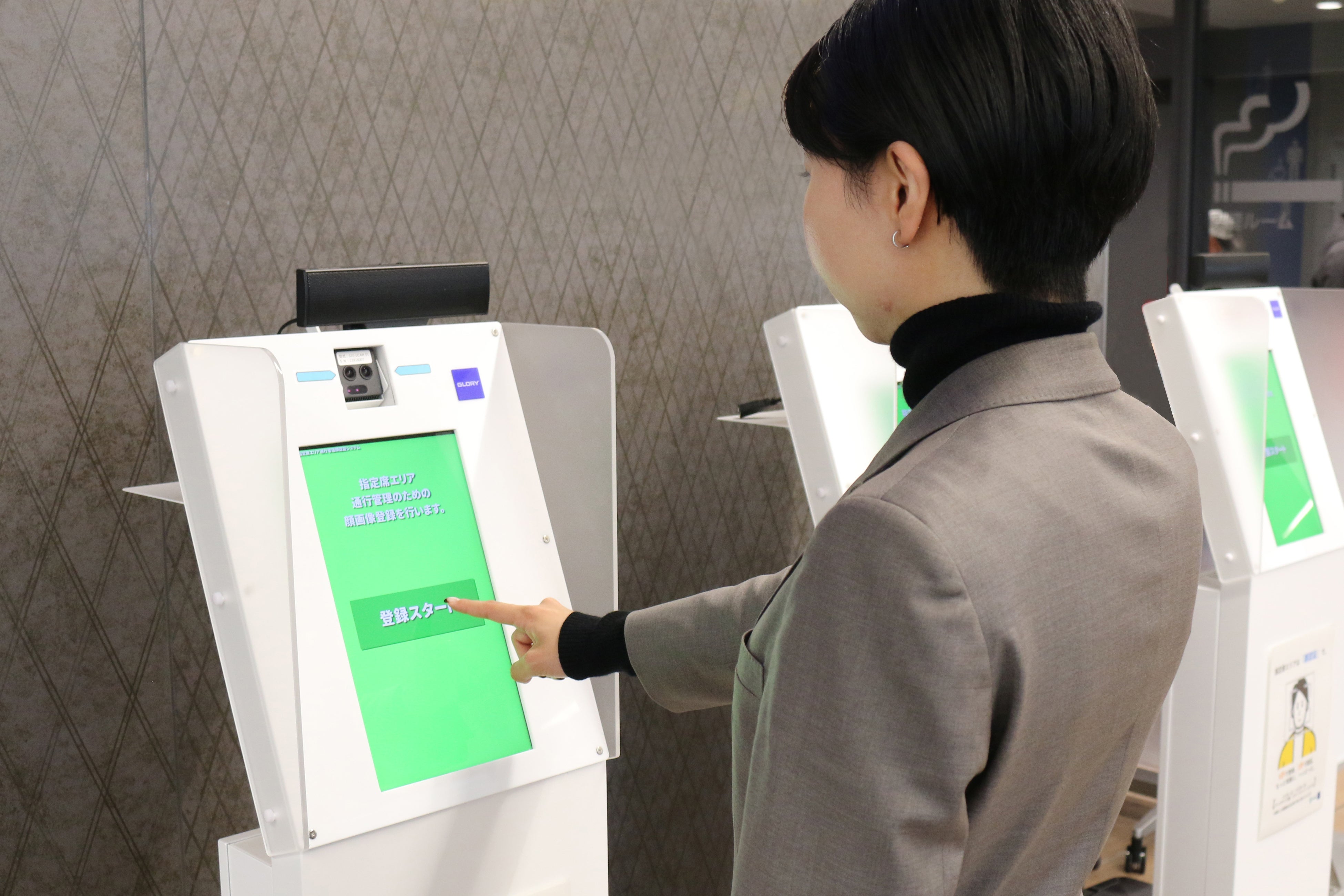 具体的には、顔画像登録端末で自身の顔画像を登録しておくと、指定席エリアへの入退場時は顔認証端末に顔をかざすだけで、本人認証ができ、入退場が可能となります。