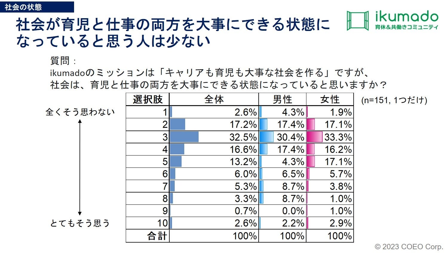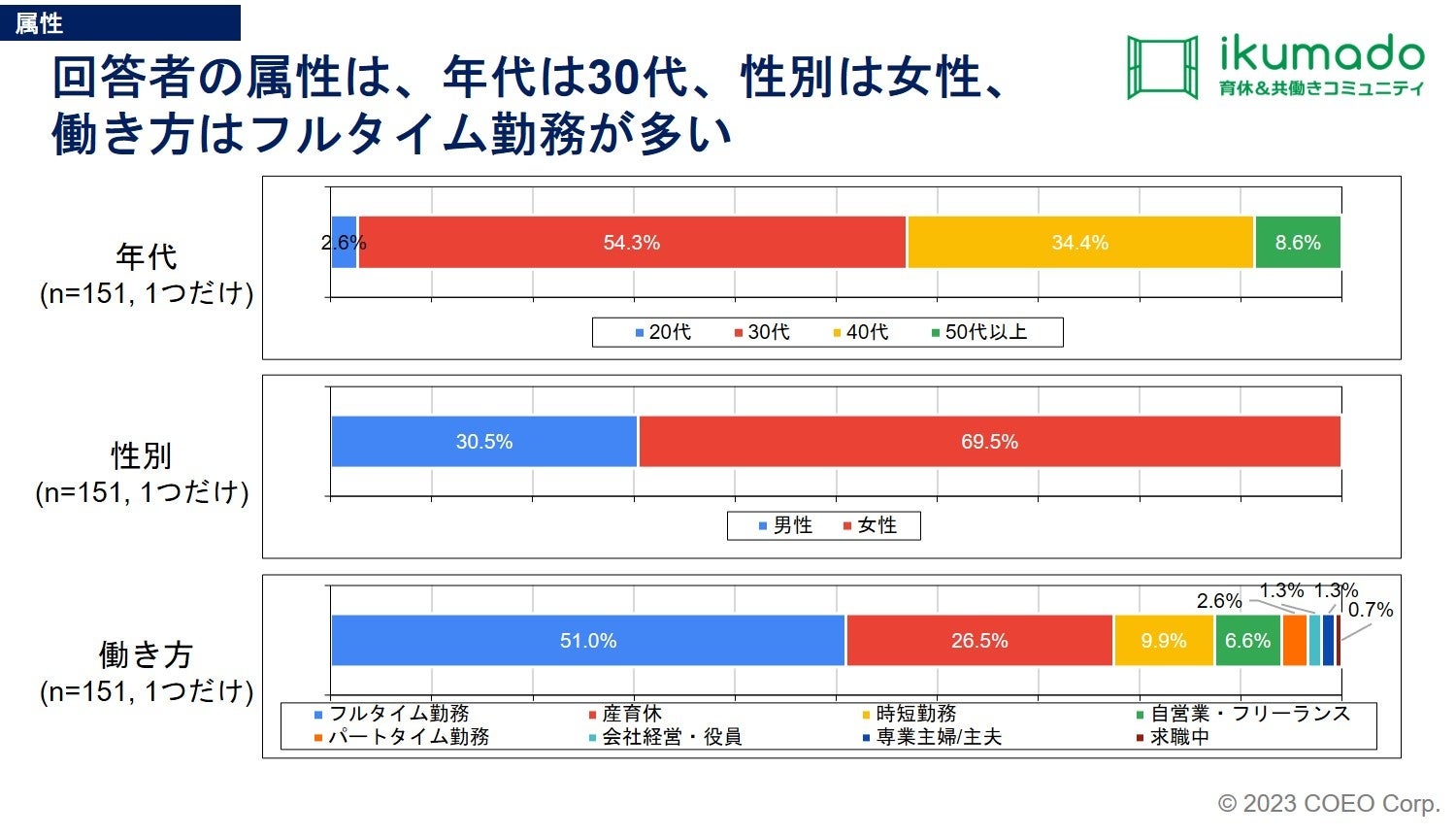 「ikumado 1,000人Fes」イベント開催(2023年3月11日)に先立ち、ikumadoのミッションである「キャリアも育児も大事な社会」がどの程度実現されているかの現状を調査する。