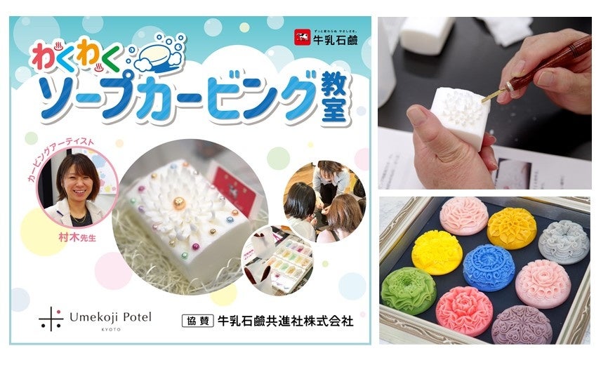 株式会社JR西日本ホロニック(京都市下京区/代表取締役 長田一郎)が運営するUmekoji Potel KYOTO(梅小路ポテル京都)は、客室オリジナルアメニティや梅小路銭湯ぽて湯、「銭湯ギャラリー」イベント等これまでコラボレーションしてきた牛乳石鹼共進社株式会社(大阪府)と共に4月16日(土)と17日(日)の2日間ソープカービング体験を開催いたします。
