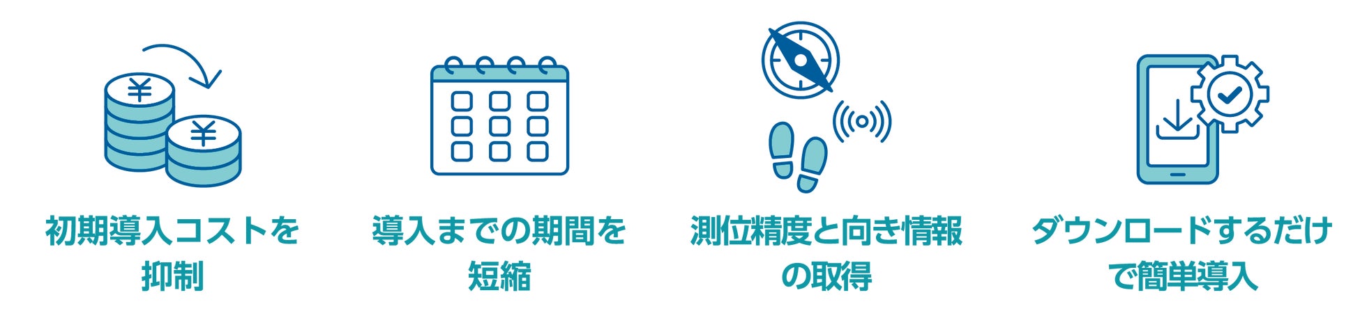 面積の広いエリアや多店舗導入時に従来の屋内測位ソリューションでは障壁となっていた初期設定の期間を軽減します。