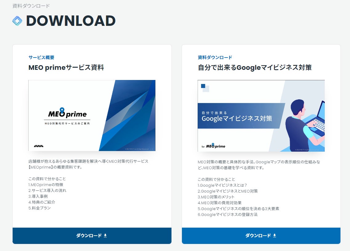 また、当社では中小企業をエンパワーメントするために、MEO対策「MEO prime」をはじめとした集客対策サービスを提供しております。