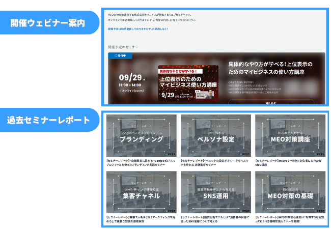 皆様のおかげで、オンラインセミナーの開催頻度が増えて参りました。それに伴い、開催セミナーを一覧で確認できるページを追加いたしました。