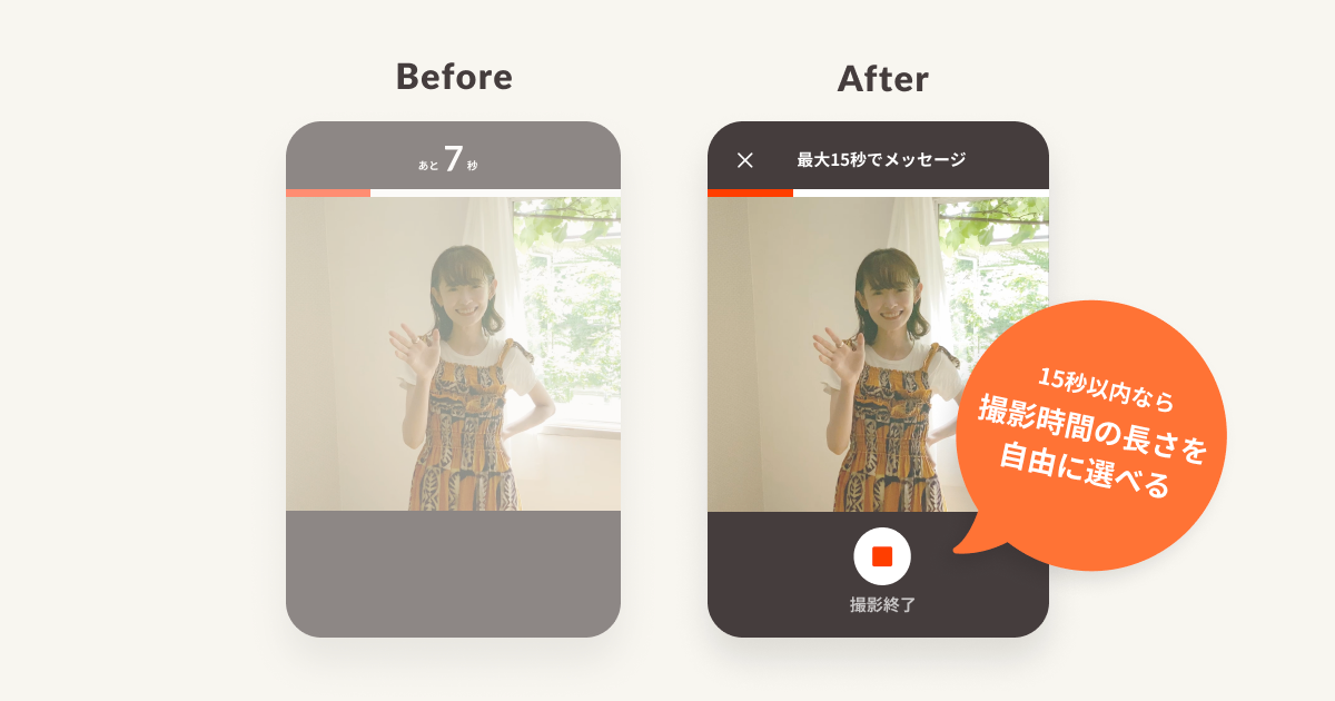 ◆ アップデート2:動画の長さを、最大15秒で自由な秒数に設定できるように。