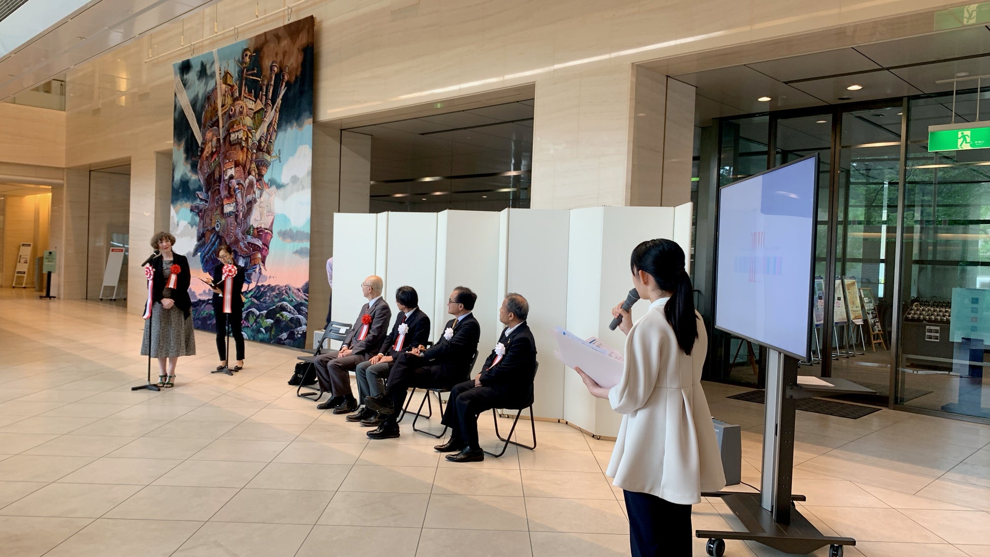本⽇、⼀般公開に先⽴ち、オービュッソン国際タピスリーセンターの学芸員やス タジオジブリ関係者の⽴ち合いのもと、展⽰セレモニーを執り⾏いました。7⽉2⽇ (⽕)より⼀般公開(無料展⽰)となりますので、ぜひこの機会にご鑑賞ください。